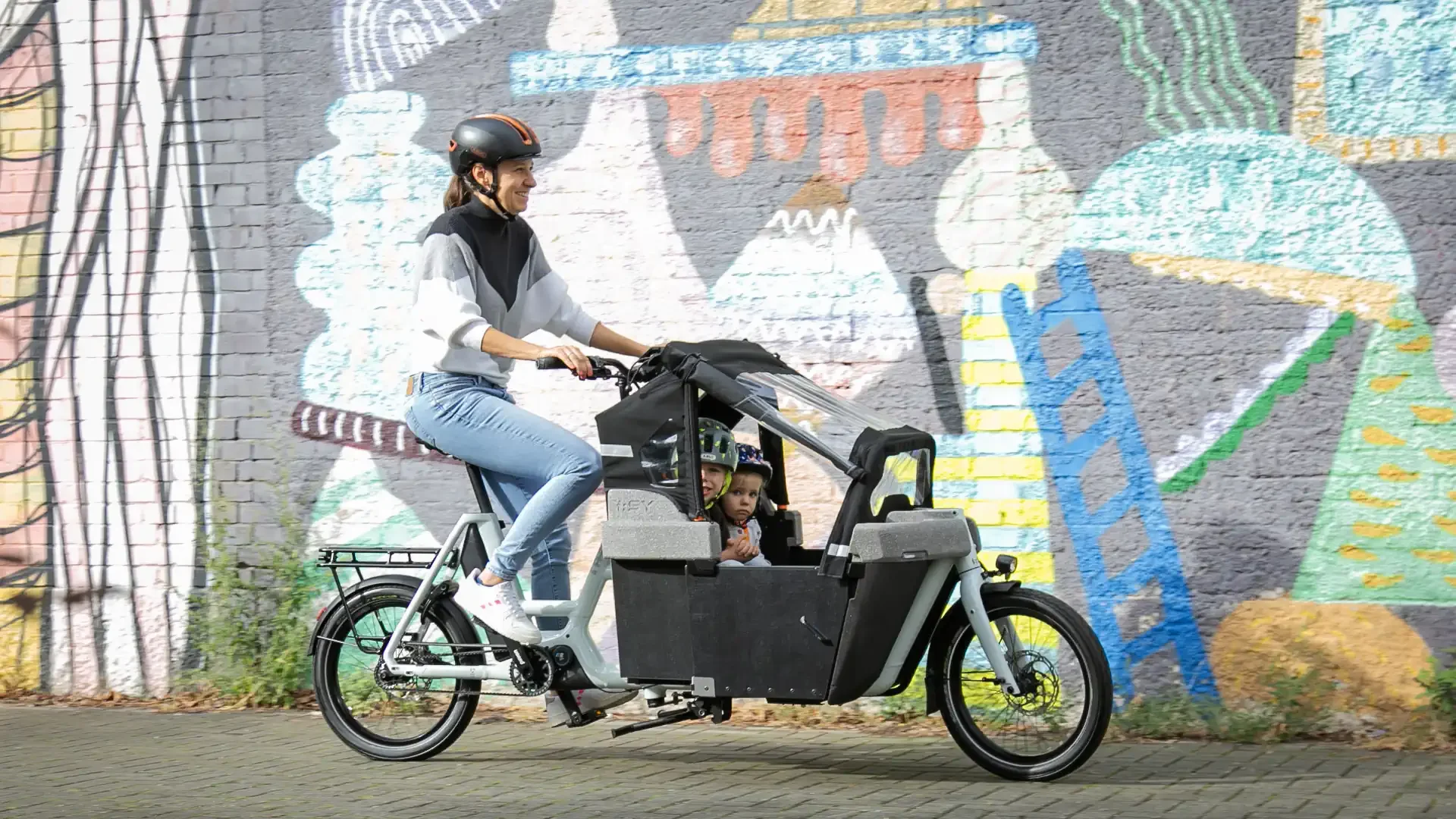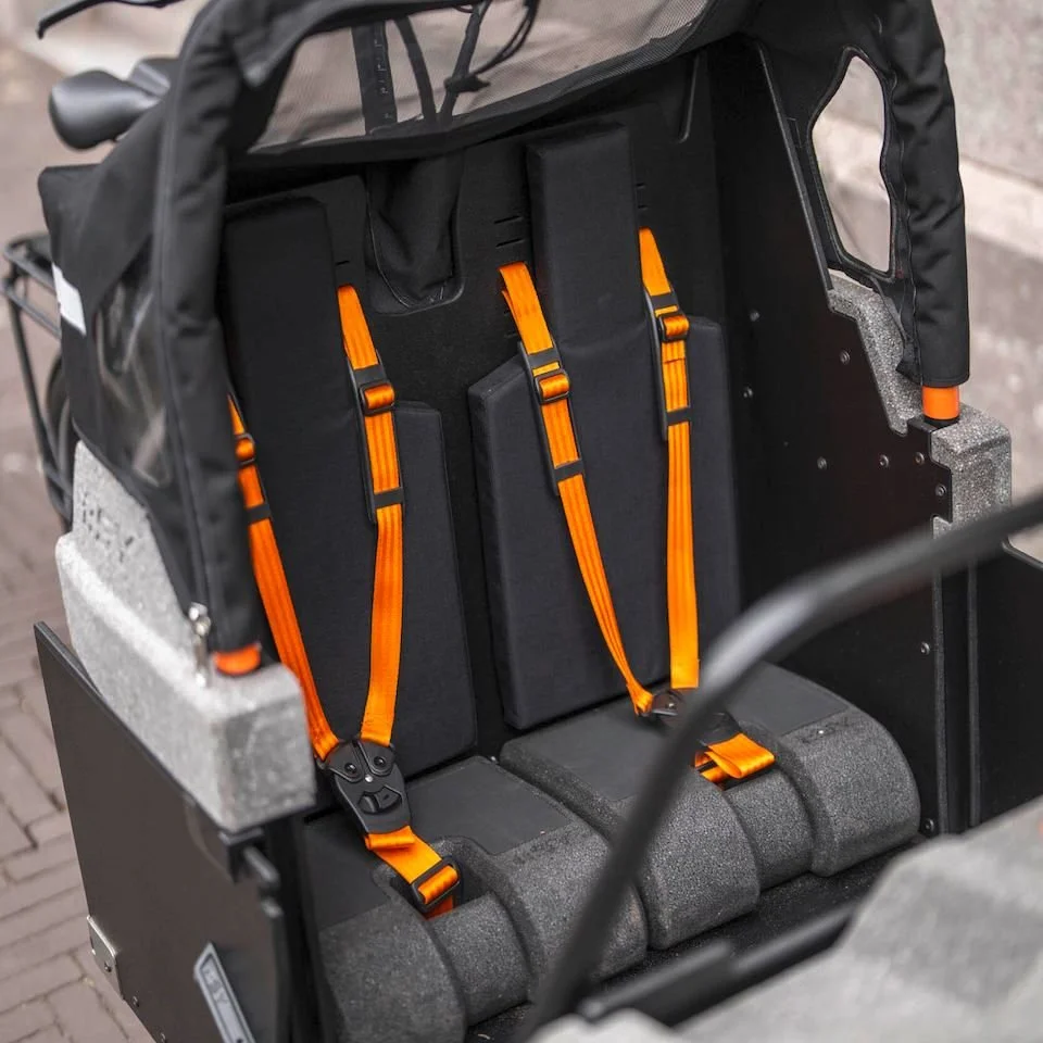 Zweiteilige Allwetter-Verdeck, das vor Regen, Sonne und Wind schützt. Ein durchgehender StVZO konformer Reflektorstreifen an den Seiten sorgt für zusätzliche Sichtbarkeit. Made in EU.